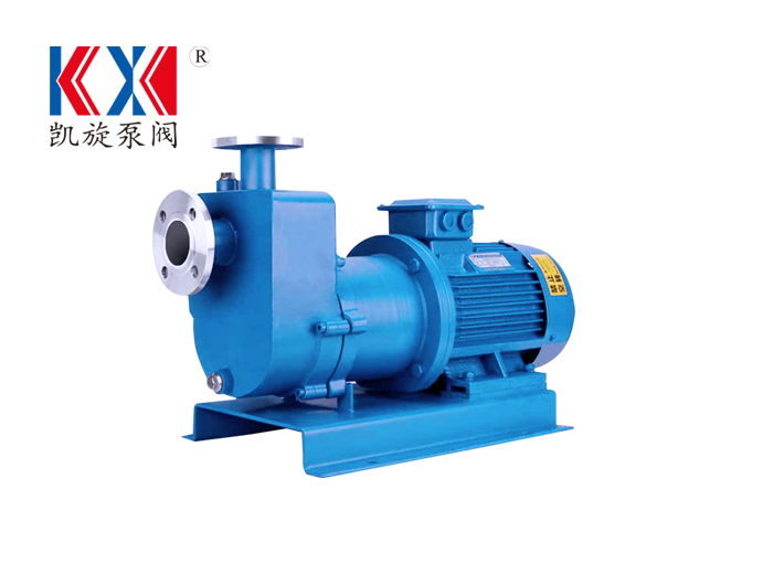 ZCQ型自吸式磁力泵采用外混式軸向回水泵體的結構,泵體由吸液室、儲液室、蝸殼、回流孔、氣液分離室等部份組成。泵啟動后,在離心力的作用下,吸水室中的剩余液與進液管路中的空氣被葉輪攪拌成氣水混合物,混合物經蝸殼進入氣液分離室,隨著速度減慢,導致氣水分離,空氣由泵出液口排出,液經回水孔返回泵內,經過多次循環,進液管道中的空氣被排凈,使泵內形成一定的真空度,達到自吸的作用。