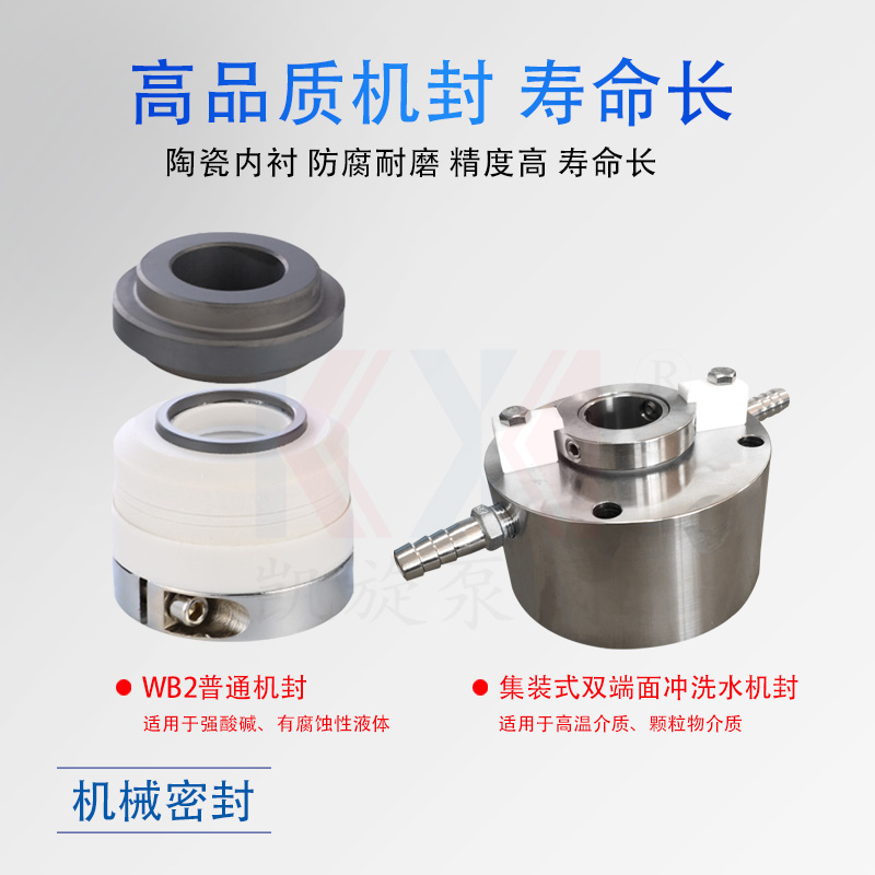 lH不銹鋼離心泵,過流部件采用304、316L等高品質不銹鋼材質制造。運行穩,壽命長,是輸送堿液的理想設備。純堿液(苛性鈉水溶液、氫氧化鈉、氫氧化鉀等)建議選擇雙端面沖洗水機封,沖洗方案p54。不建議WB2配無壓機封,壽命很短,機械密封的磨面會析出堿液,堿液和空氣中的二氧化碳反應,生成白色的碳酸鈉結晶。
