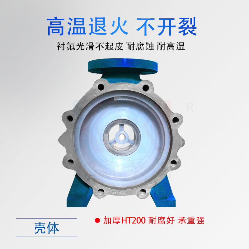 IMC硝酸泵,利用內(nèi)外永磁體傳動(dòng),實(shí)現(xiàn)扭矩?zé)o接觸傳遞,當(dāng)電動(dòng)機(jī)帶動(dòng)外轉(zhuǎn)子總成旋轉(zhuǎn)時(shí),通過(guò)磁場(chǎng)的作用磁力線(xiàn)穿過(guò)隔離套帶動(dòng)內(nèi)轉(zhuǎn)子總成和葉輪同步旋轉(zhuǎn),隔離套將介質(zhì)完全密封,從而達(dá)到無(wú)泄漏輸送介質(zhì)的目的。過(guò)流部件采用氟塑料及高純度碳化硅制成,具有良好的耐腐蝕性和密封性,安全無(wú)泄漏是輸送硝酸的很好選擇。選配時(shí),1、密封圈選擇包氟圈或四氟圈;2、轉(zhuǎn)子和隔離套更換成PFA,普通的FEP在硝酸中會(huì)有溶脹變型。