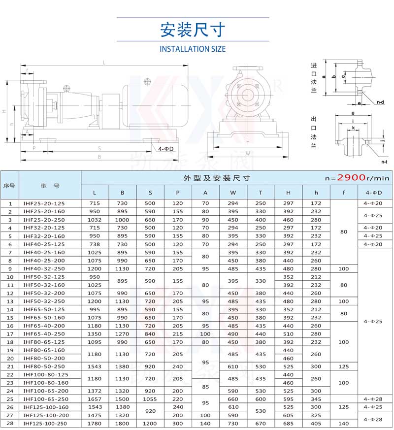 IHF系列是目前應用廣泛的耐腐蝕泵之一,其葉輪采用閉式結構,并留有付葉輪及平衡孔設計,保證了抗汽蝕性能的同時,也減小了密封處的壓力,延長了易損件的使用壽命。密封可配備外裝式單端面機械密封、集裝式雙端面機械密封,機封可采用碳化硅、四氟、石墨、氧化鋁、硬質合金等材料制造。并可根據工作需求配置相應的機封沖洗方案。
